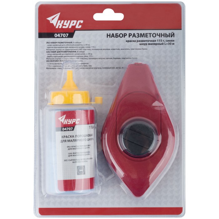 Шнур малярный отбойный, ABS пластиковый корпус 30 м + краска разметочная 115 гр. (04707)