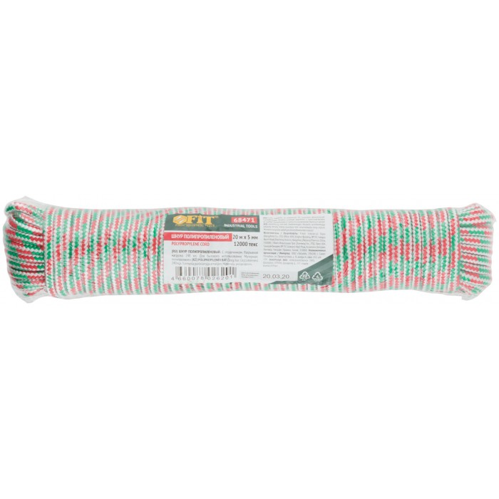 Шнур полипропиленовый с сердечником 5 мм х 20 м, р/н= 240 кгс (68471)