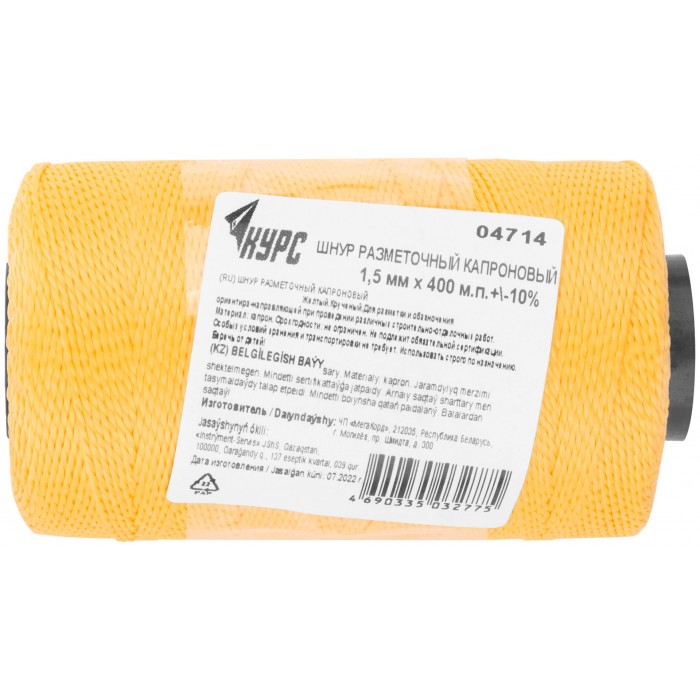 Шнур разметочный капроновый 1,5 мм х 400 м, желтый (04714)