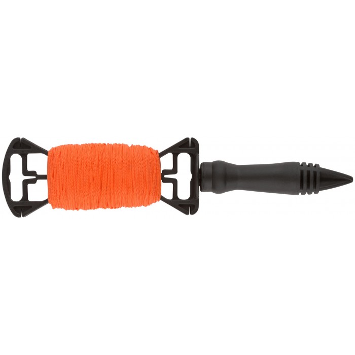 На катушке. Применяется в качестве ориентира при кладке кирпича, монтаже строительных конструкций , а также других строительных, хозяйственных, земельных работах. Материал: нейлоновый шнур, пластиковая вращающаяся катушка.