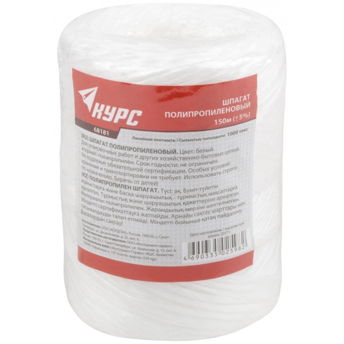 Шпагат полипропиленовый 1000 текс, 150 м белый (68181)