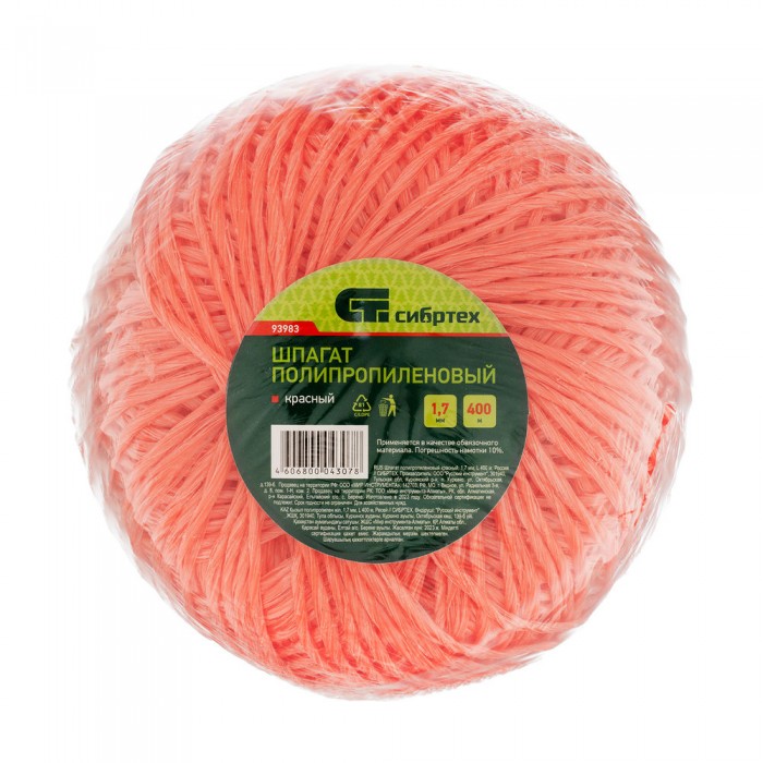 Шпагат полипропиленовый красный, 1.7 мм, L 400 м, Сибртех (93983)
