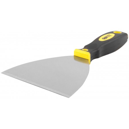 Профи. Для зачистки обрабатываемой поверхности. Твёрдое лезвие из полированной усиленной стали HRC 72-78, заточенная грань, мягкая двухкомпонентная ручка с металлическим бойком.