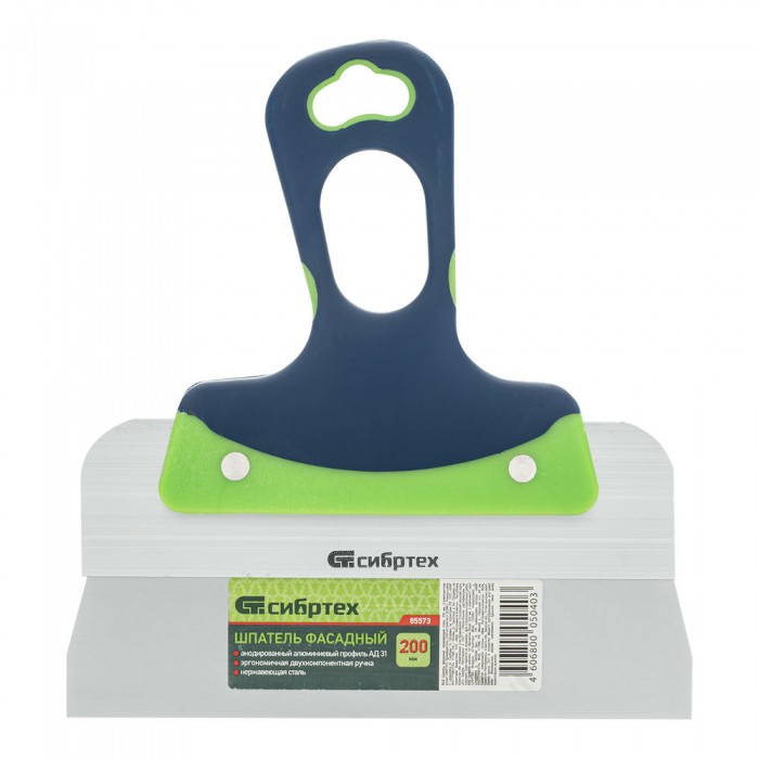 Шпатель фасадный, нержавеющая сталь, 200 мм, двухкомпонентная ручка Сибртех (85573)