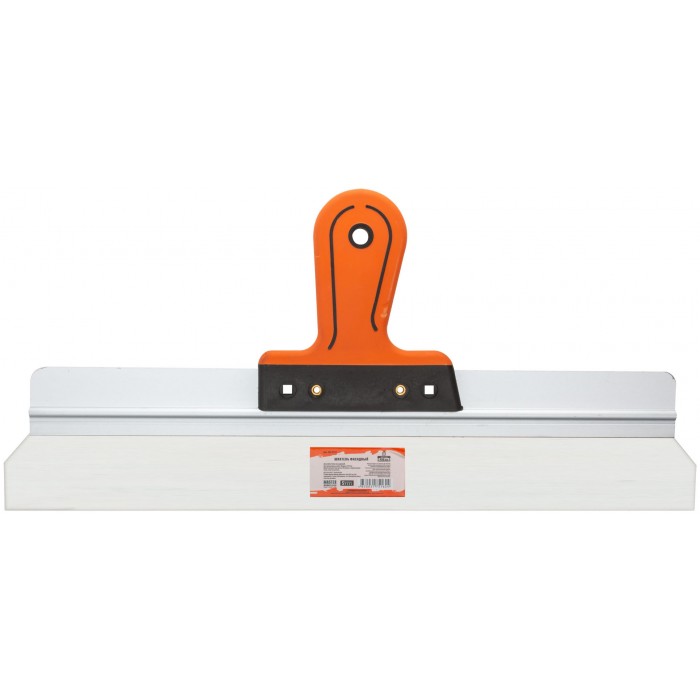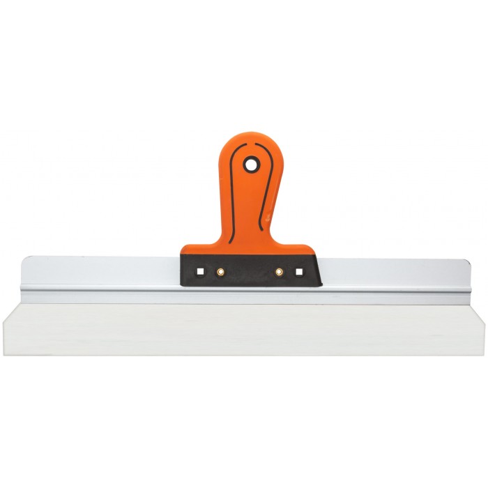 Фасадный шпатель из нержавеющей стали для штукатурных работ. Алюминиевая основа, эргономичная 2-К ручка. Материал: нержавеющая сталь, прорезиненная ручка.