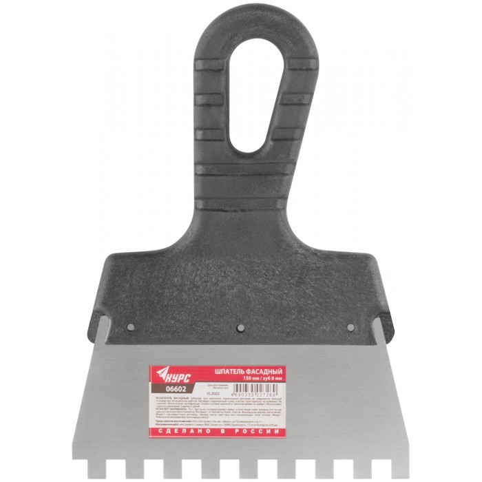 Шпатель фасадный нержавеющий зубчатый 150 мм / зуб 8 мм (06602)