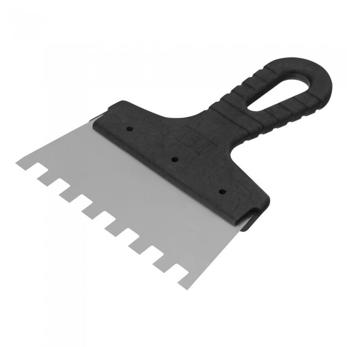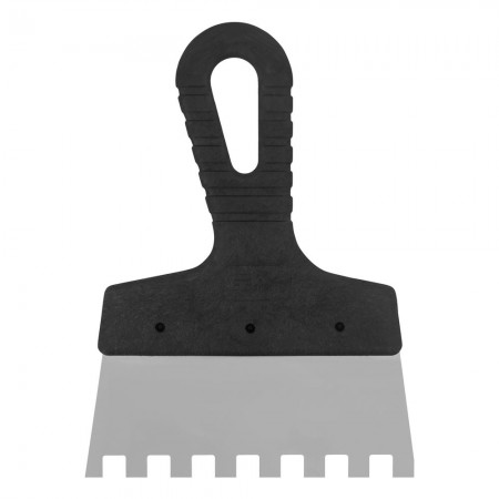 Шпатель из нержавеющей стали, 150 мм, зуб 10 х 10 мм, пластмассовая ручка Сибртех (85480)