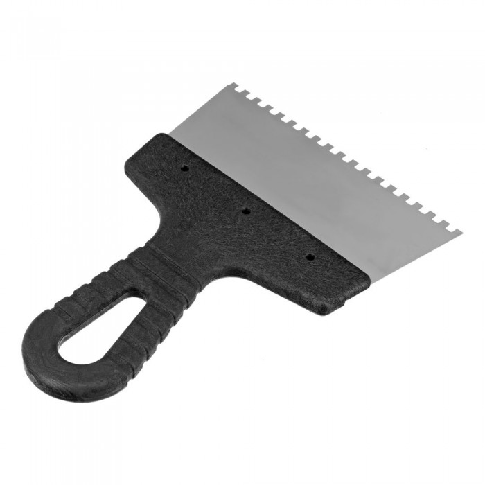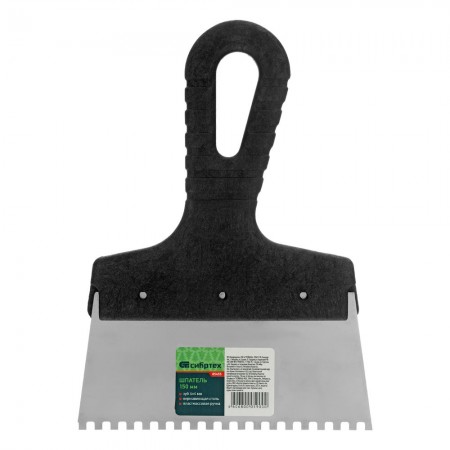 Шпатель из нержавеющей стали, 150 мм, зуб 4 х 4 мм, пластмассовая ручка Сибртех (85455)