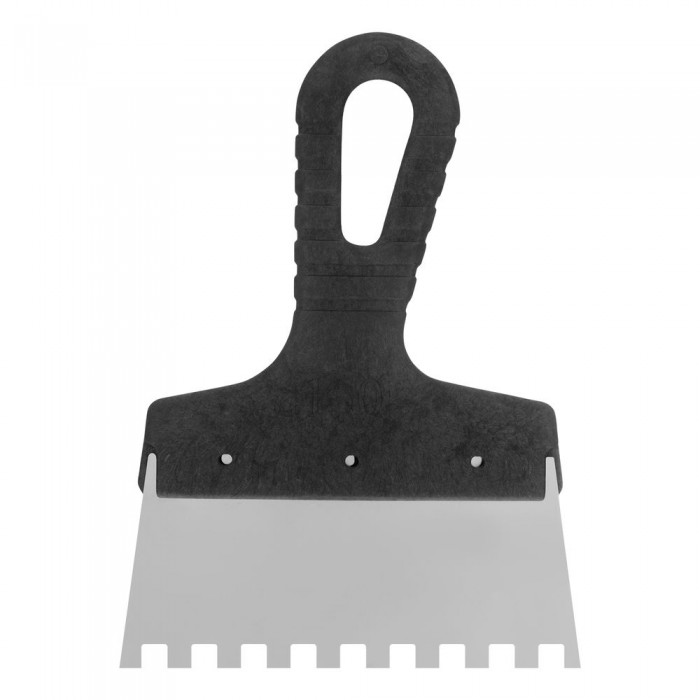 Шпатель из нержавеющей стали, 150 мм, зуб 8 х 8 мм, пластмассовая ручка Сибртех (85471)