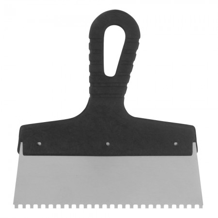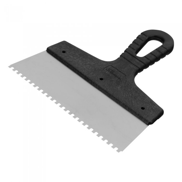 Шпатель из нержавеющей стали, 200 мм, зуб 4 х 4 мм, пластмассовая ручка Сибртех (85456)