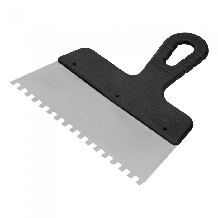 Шпатель из нержавеющей стали, 200 мм, зуб 6 х 6 мм, пластмассовая ручка Сибртех (85464)