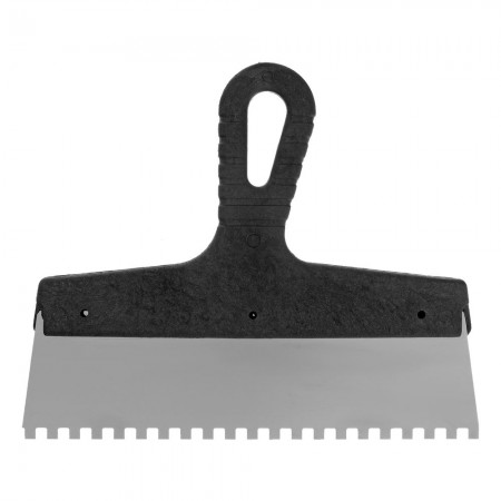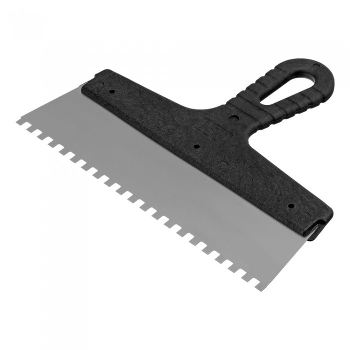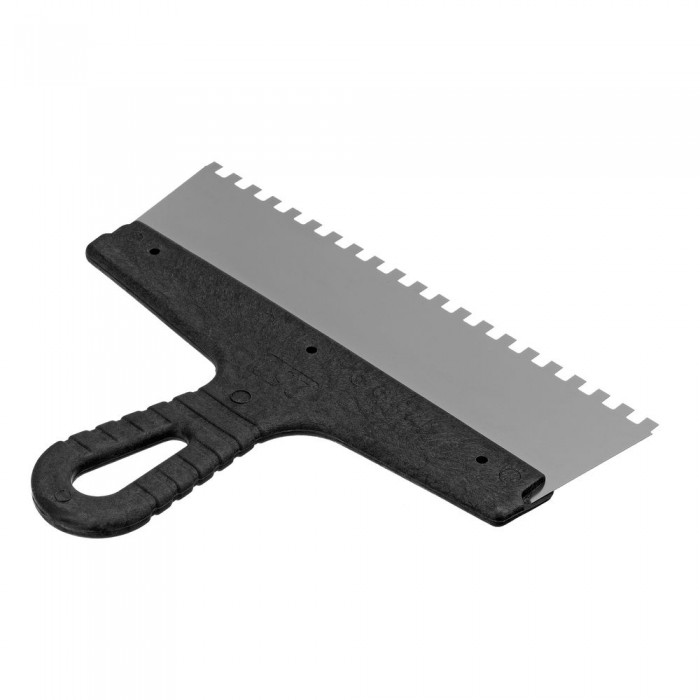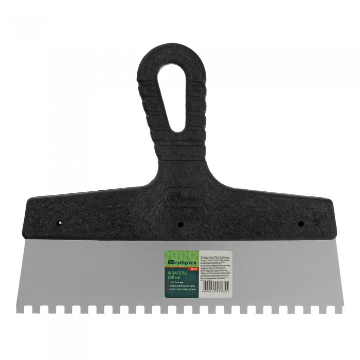 Шпатель из нержавеющей стали, 250 мм, зуб 6 х 6 мм, пластмассовая ручка Сибртех (85465)