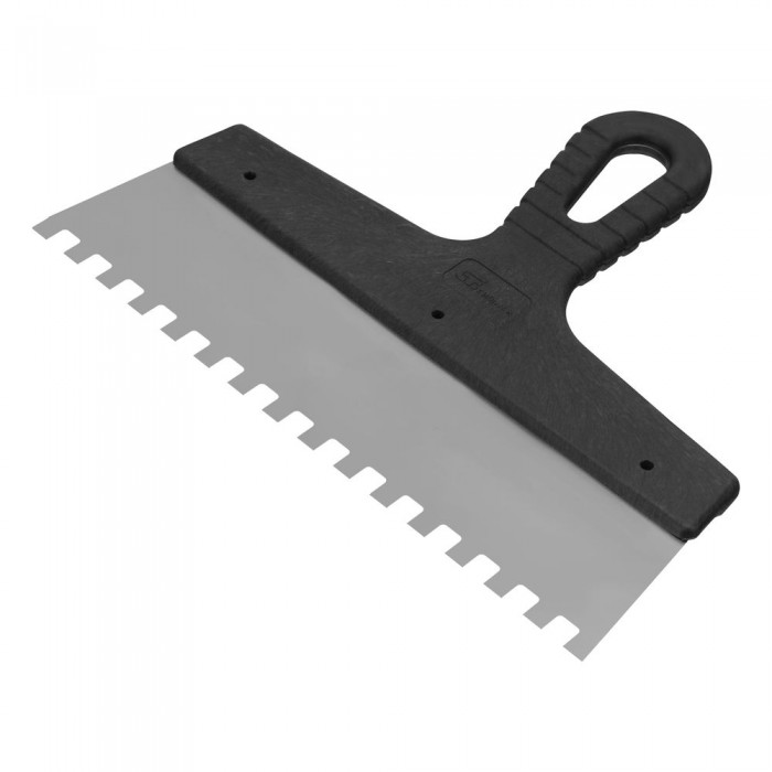 Шпатель из нержавеющей стали, 250 мм, зуб 8 х 8 мм, пластмассовая ручка Сибртех (85474)