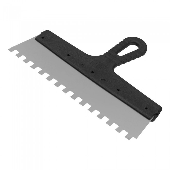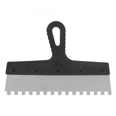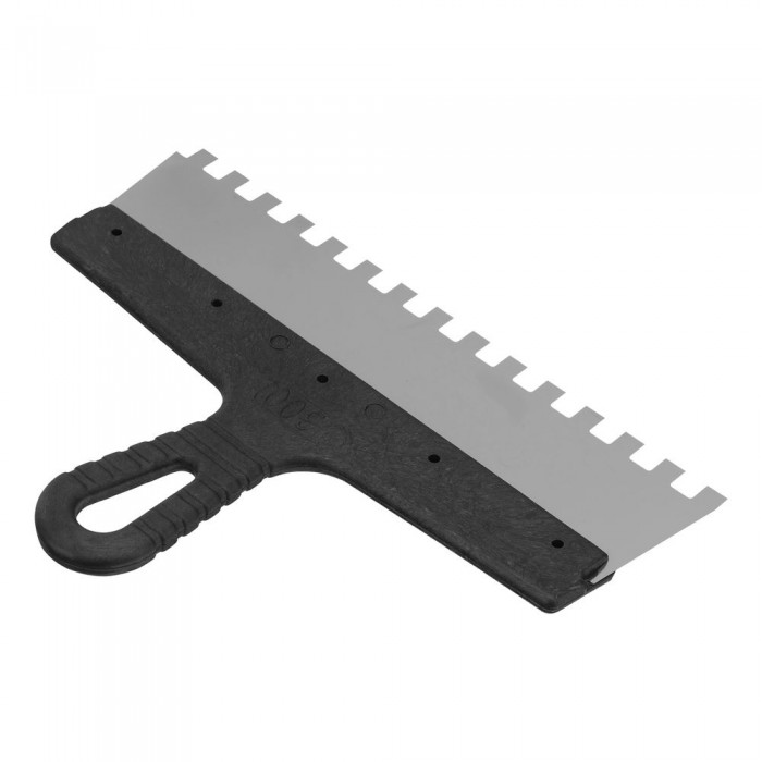 Шпатель из нержавеющей стали, 300 мм, зуб 10 х 10 мм, пластмассовая ручка Сибртех (85501)