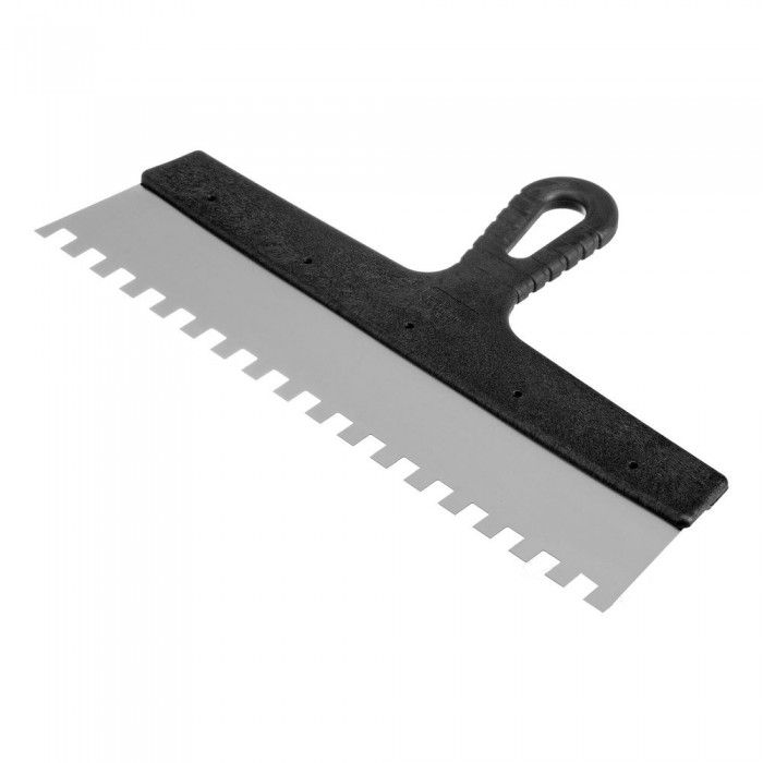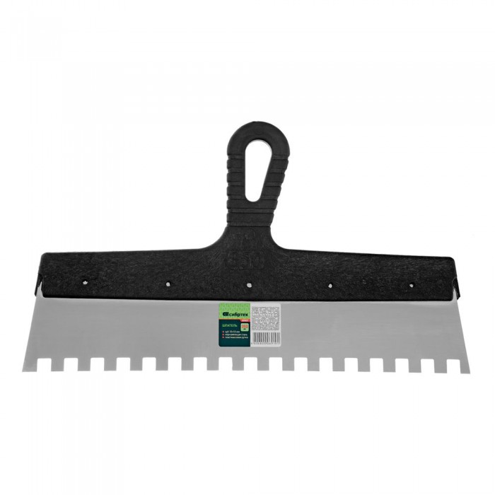 Шпатель из нержавеющей стали, 350 мм, зуб 10 х 10 мм, пластмассовая ручка Сибртех (85507)