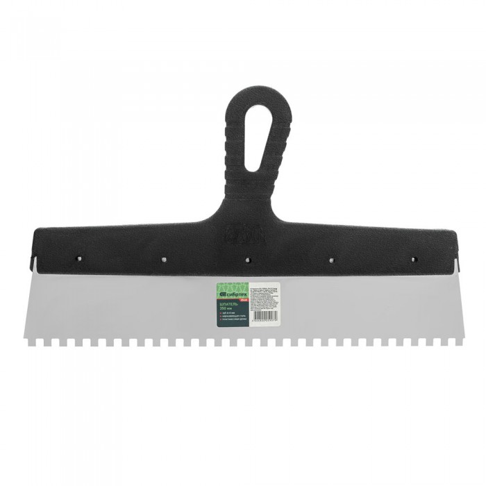 Шпатель из нержавеющей стали, 350 мм, зуб 6 х 6 мм, пластмассовая ручка Сибртех (85468)