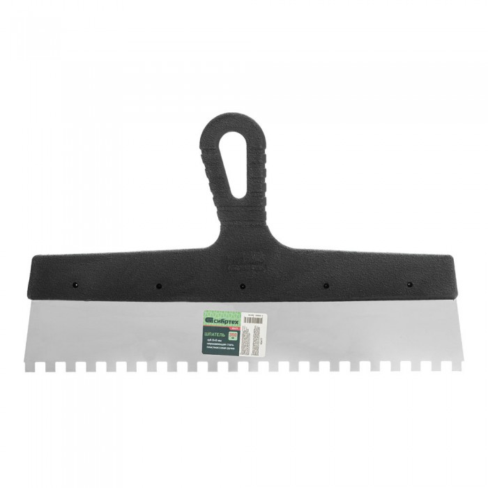 Шпатель из нержавеющей стали, 350 мм, зуб 8 х 8 мм, пластмассовая ручка Сибртех (85477)