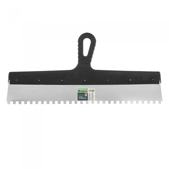 Шпатель из нержавеющей стали, 450 мм, зуб 8 х 8 мм, пластмассовая ручка Сибртех (85479)