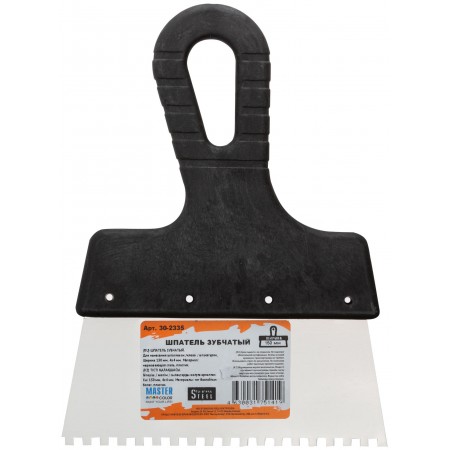 Шпатель зубчатый, 4х4 мм, нержавеющая сталь, пластиковая ручка, 150 мм (30-2335)