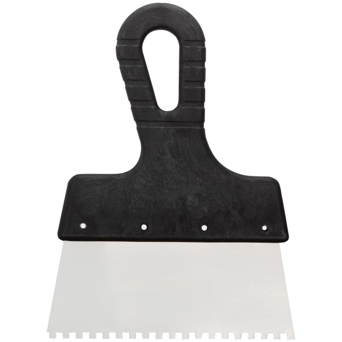Шпатель зубчатый. Для нанесения клея. Материал: немецкая нержавеющая сталь, пластиковая ручка.