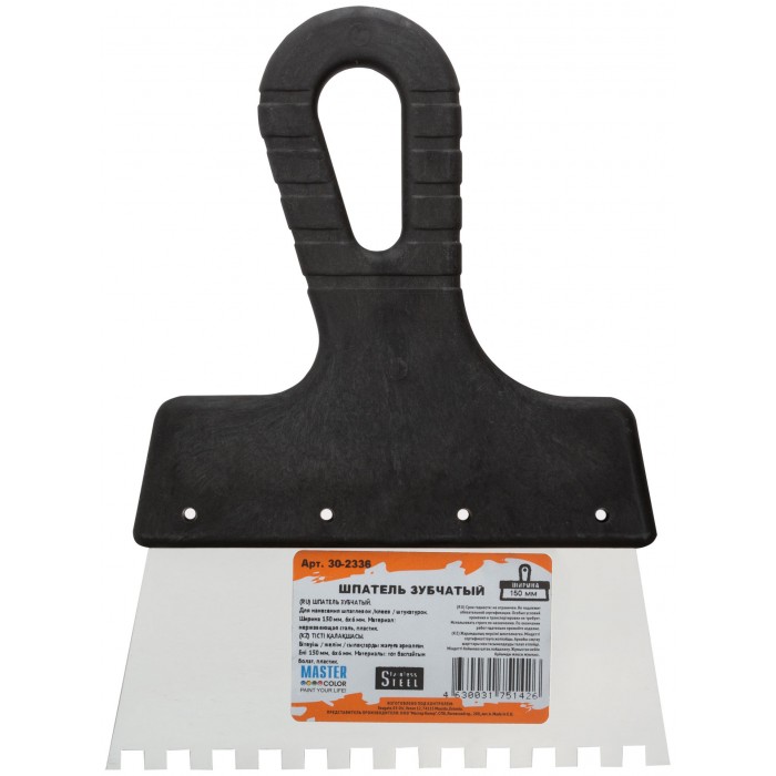 Шпатель зубчатый, 6х6 мм, нержавеющая сталь, пластиковая ручка, 150 мм (30-2336)
