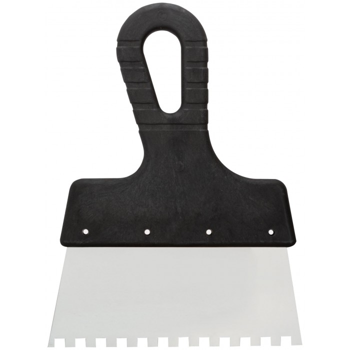 Шпатель зубчатый. Для нанесения клея. Материал: немецкая нержавеющая сталь, пластиковая ручка.