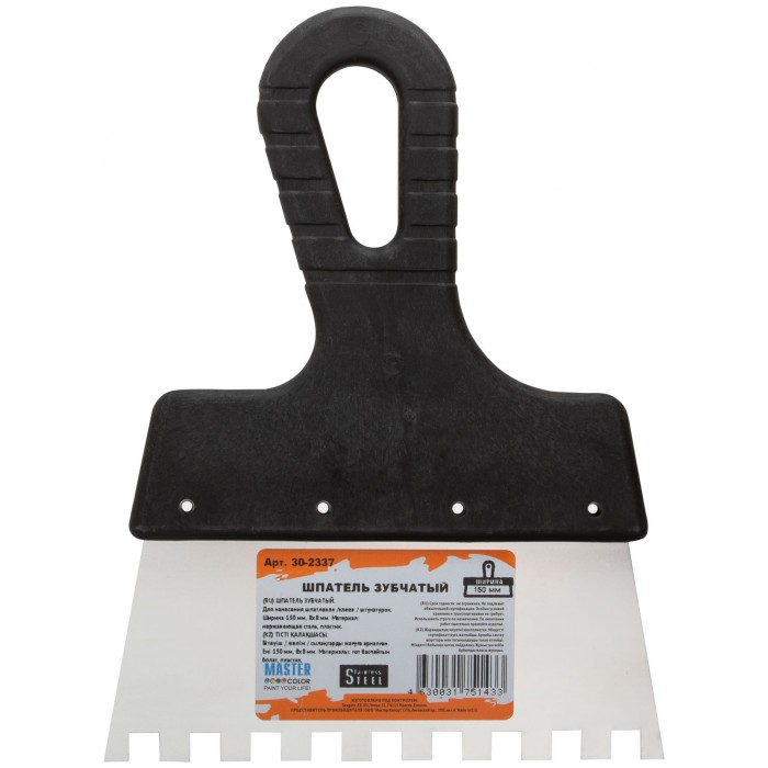 Шпатель зубчатый, 8х8 мм, нержавеющая сталь, пластиковая ручка, 150 мм (30-2337)