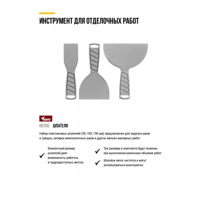 Шпатели пластиковые набор 3 шт., 50/100/150 мм (06765)
