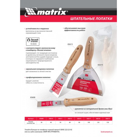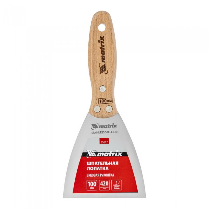 Шпательная лопатка из нержавеющей стали, 100 мм, буковая рукоятка, EFP Matrix (85617)