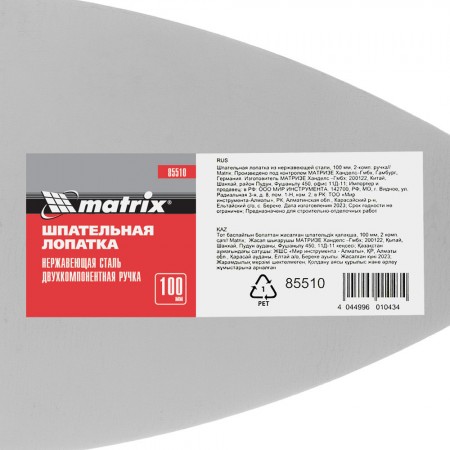 Шпательная лопатка из нержавеющей стали, 100 мм, двухкомпонентная ручка Matrix (85510)