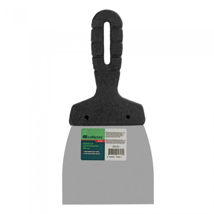 Шпательная лопатка из нержавеющей стали, 100 мм, пластмассовая ручка Сибртех (85435)