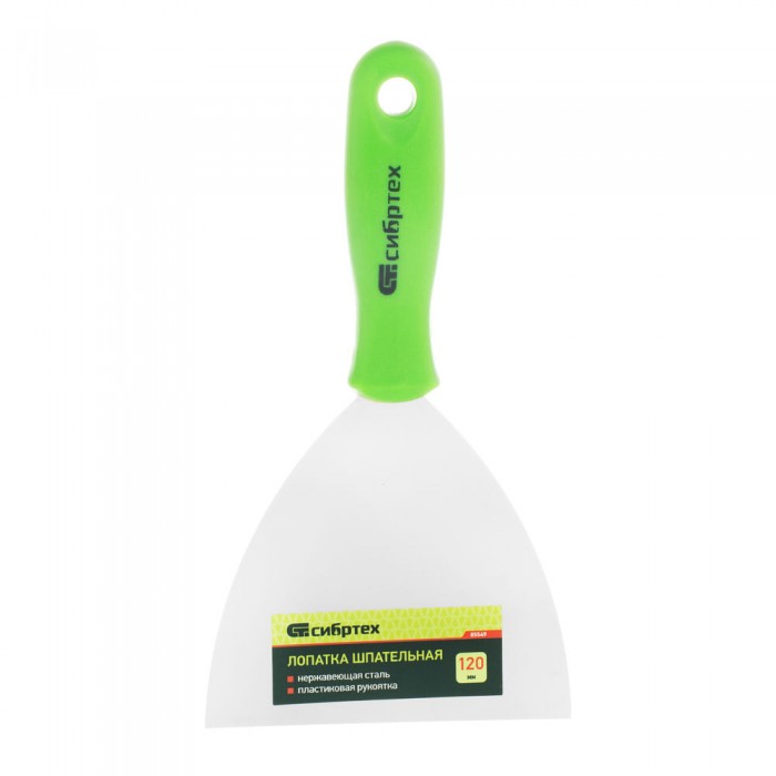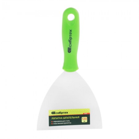 Шпательная лопатка из нержавеющей стали, 120 мм, пластмассовая ручка Сибртех (85549)