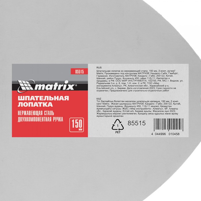 Шпательная лопатка из нержавеющей стали, 150 мм, двухкомпонентная ручка Matrix (85515)