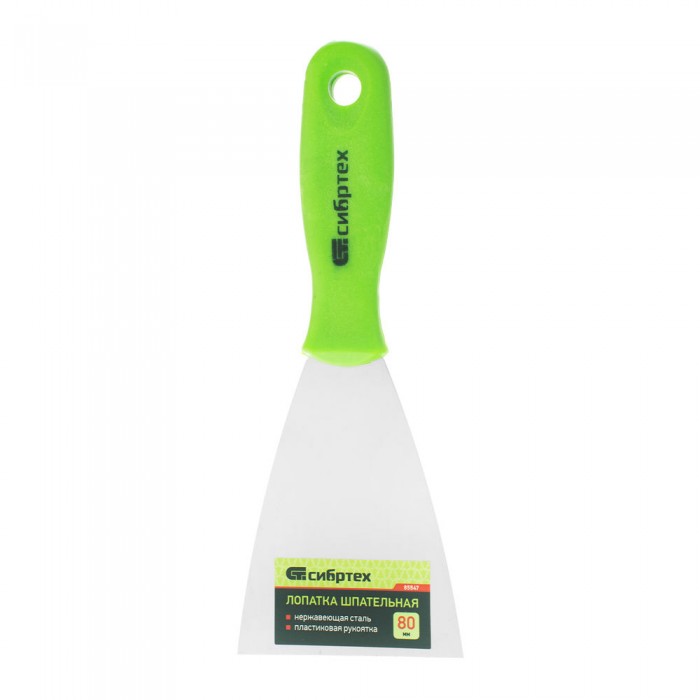 Шпательная лопатка из нержавеющей стали, 80 мм, пластмассовая ручка Сибртех (85547)
