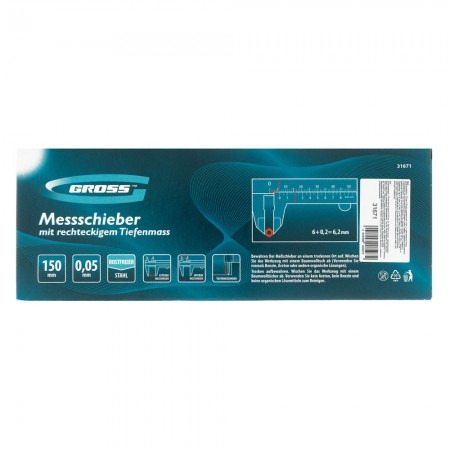 Штангенциркуль, 150 мм, 0.05 мм, нержавеющая сталь, с глубиномером Gross (31671)