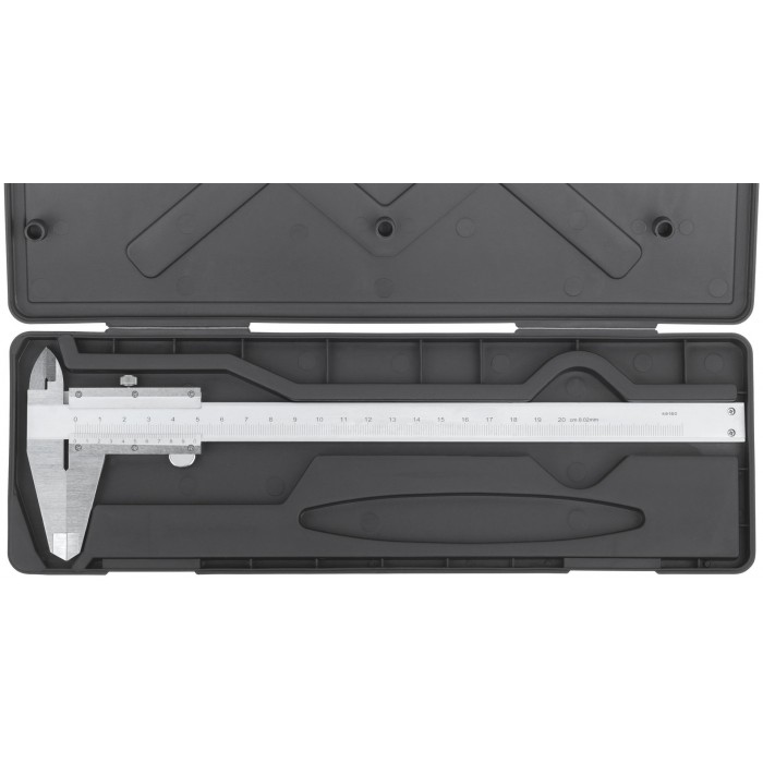 Для наружных и внутренних измерений. Точность 0,02 мм. В пластиковом футляре. Материал: нержавеющая сталь .