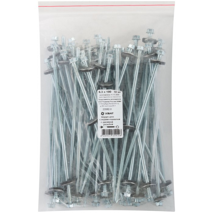 Шуруп для сэндвич-панелей с двойной резьбой, 6,3 х 180 50 шт Фасовка (23592-0)