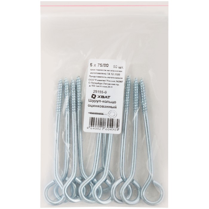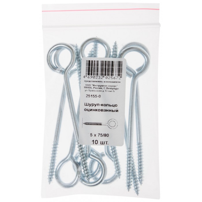 Шуруп-кольцо оцинкованный 5 х 75/80, 10 шт Фасовка (25155-0)