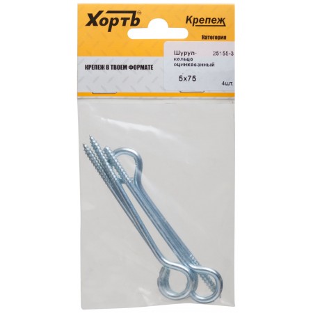 Шуруп-кольцо оцинкованный 5 х 75/80 (фасовка 4 шт) (25155-3)