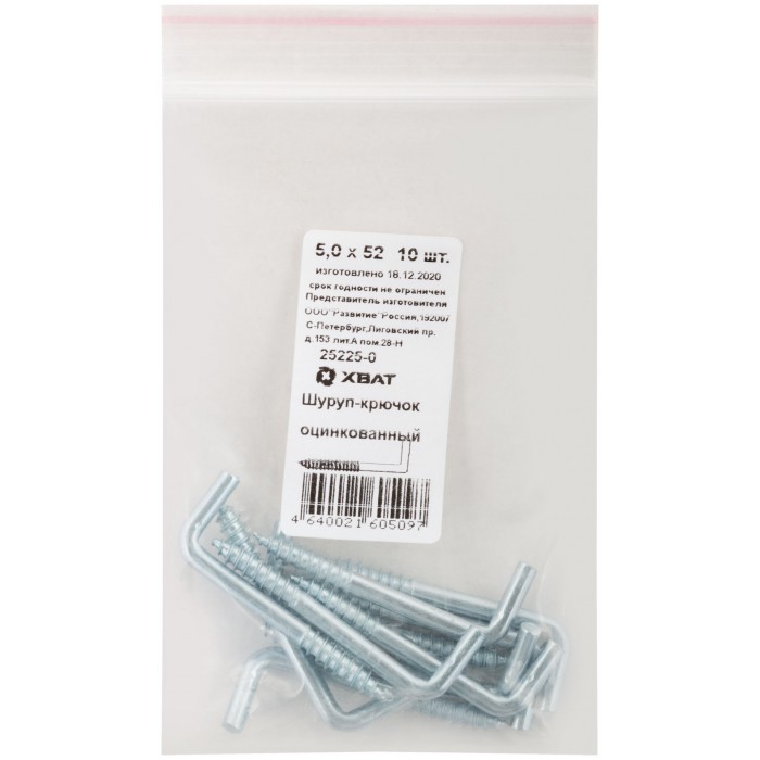 Шуруп-крючок оцинкованный, 5,0 х 52, 10 шт Фасовка (25225-0)