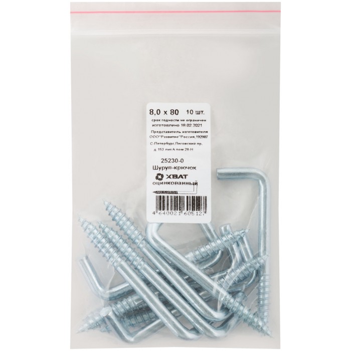 Шуруп-крючок оцинкованный, 8 х 80, 10 шт Фасовка (25230-0)