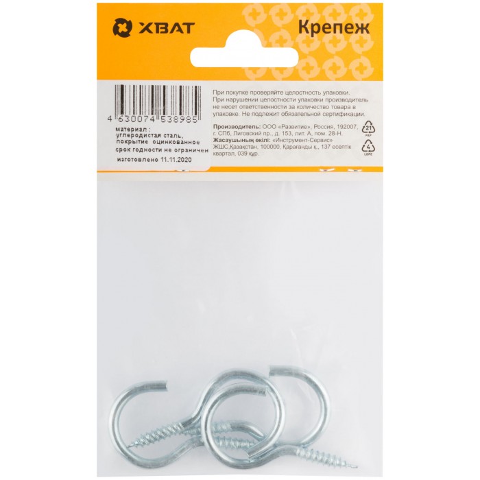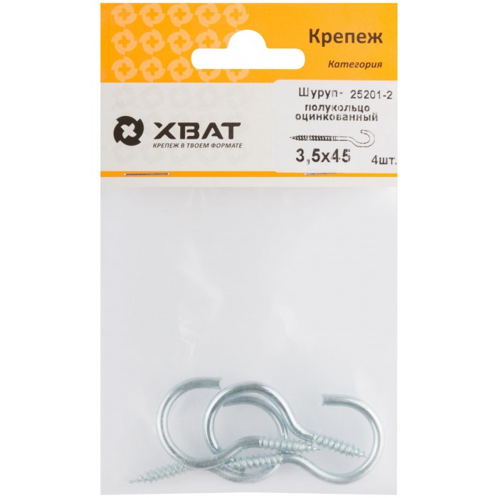 Шуруп-полукольцо оцинкованный 3,5 х 45 (фасовка 4 шт) (25201-2)