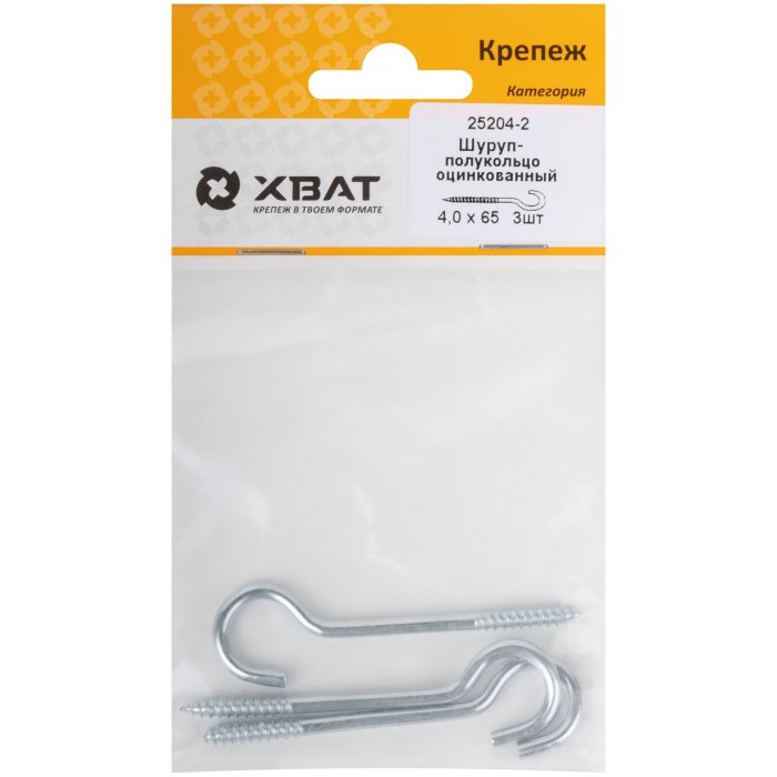 Шуруп-полукольцо оцинкованный 4,0 х 65 (фасовка 3 шт) (25204-2)