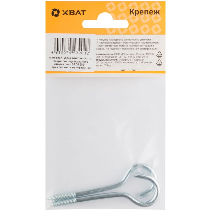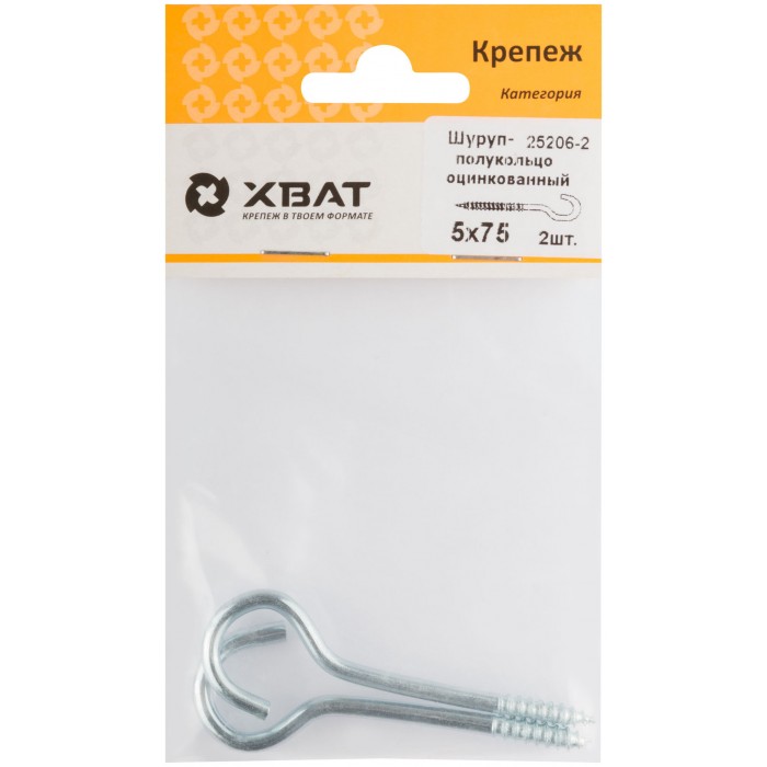 Шуруп-полукольцо оцинкованный, 5 х 75/80 (фасовка 2 шт) (25206-2)