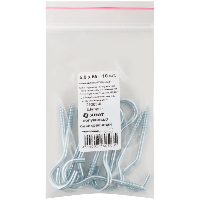 Шуруп-полукольцо оцинкованный 5,0 х 65, 10 шт Фасовка (25205-0)