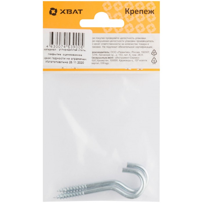 Шуруп-полукольцо оцинкованный 5,0 х 65 (фасовка 2 шт) (25205-2)