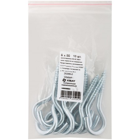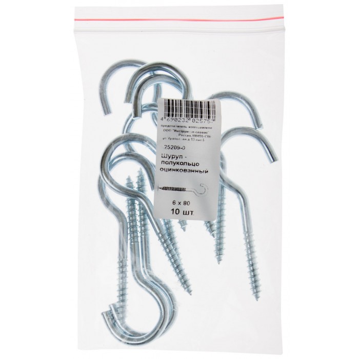 Шуруп-полукольцо оцинкованный 6 х 80, 10 шт Фасовка (25209-0)