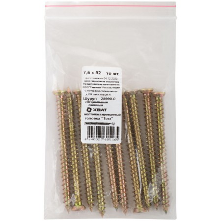 Шуруп специальный/окон, желтопассированный, головка "Torx", 7,5 х 92, 10 шт. Фасовка (25990-0)