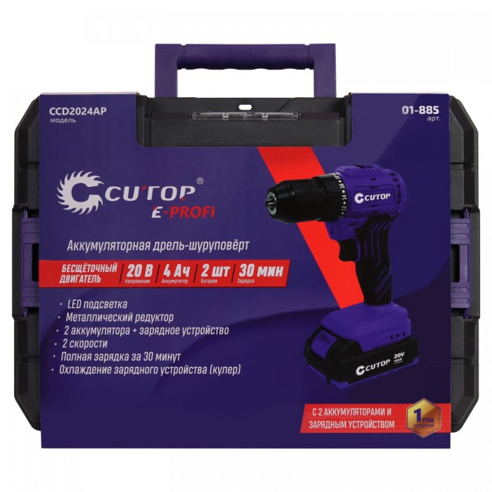 Шуруповерт Cutop E-Profi 20В, 13мм, 2 Батареи, 2ач, З/у (кулер), пл. бокс. (01-885)