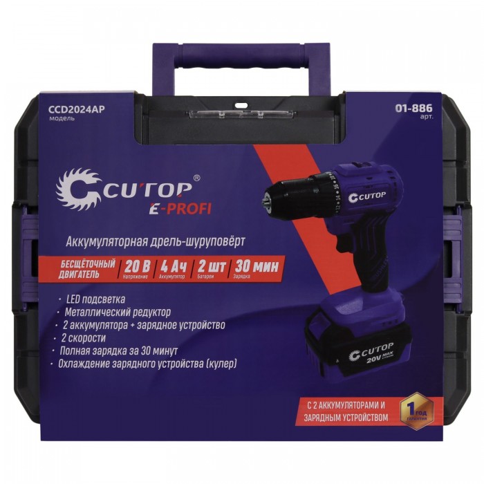 Шуруповерт Cutop E-Profi 20В, 13мм, 2 Батареи, 4ач, З/у (кулер), пл. бокс. (01-886)
